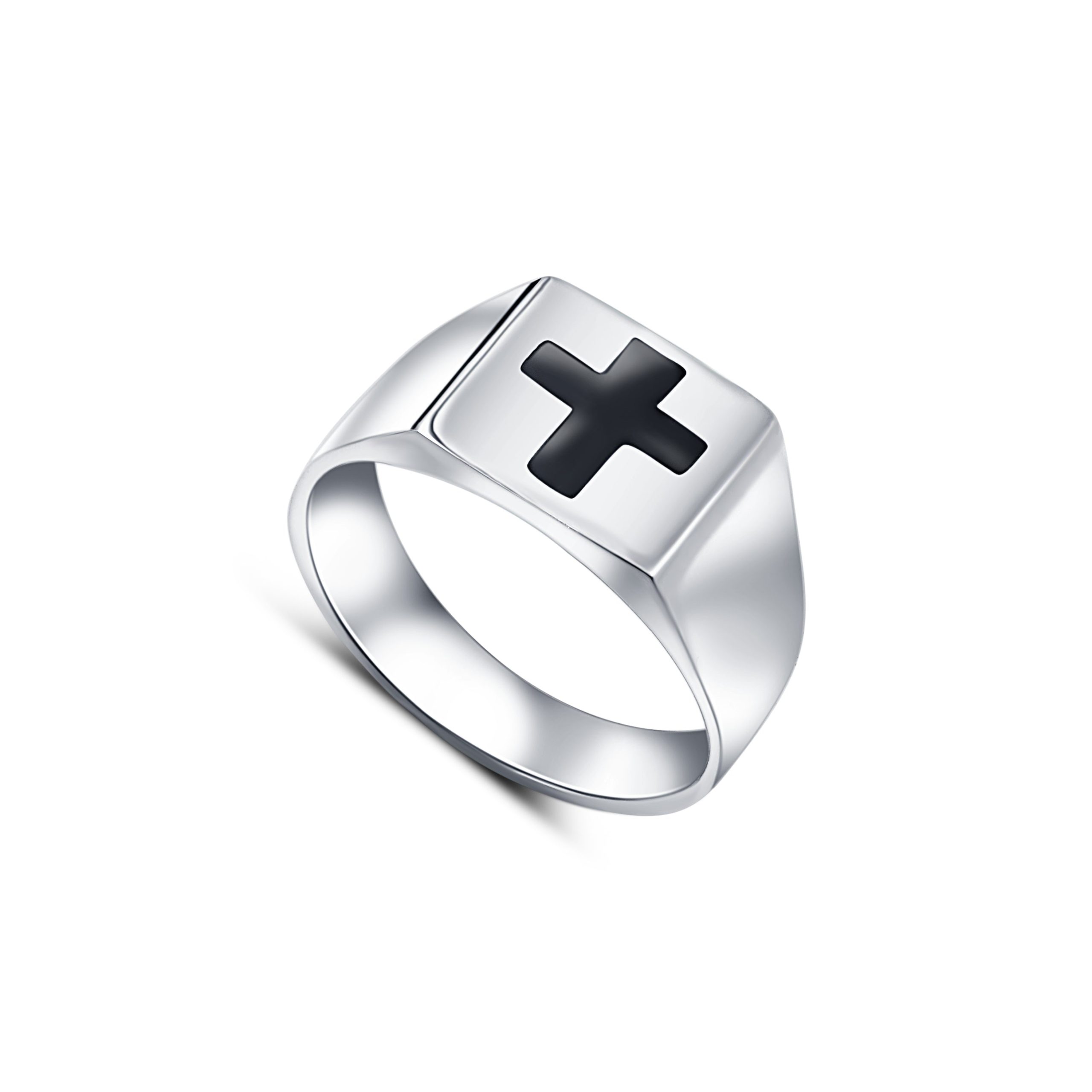 This Faith Cross Sterling Silver Ring is a sophisticated and bold statement piece for the modern man. Perfectly crafted from sterling silver and detailed with a stunning black enamel cross pattern and oxidised silver finish, this ring is sure to turn heads. Make your look both stylish and devout with this luxurious ring.