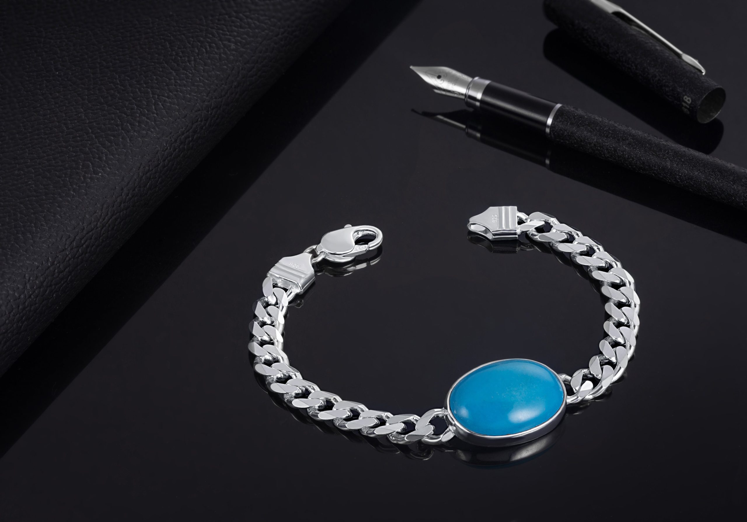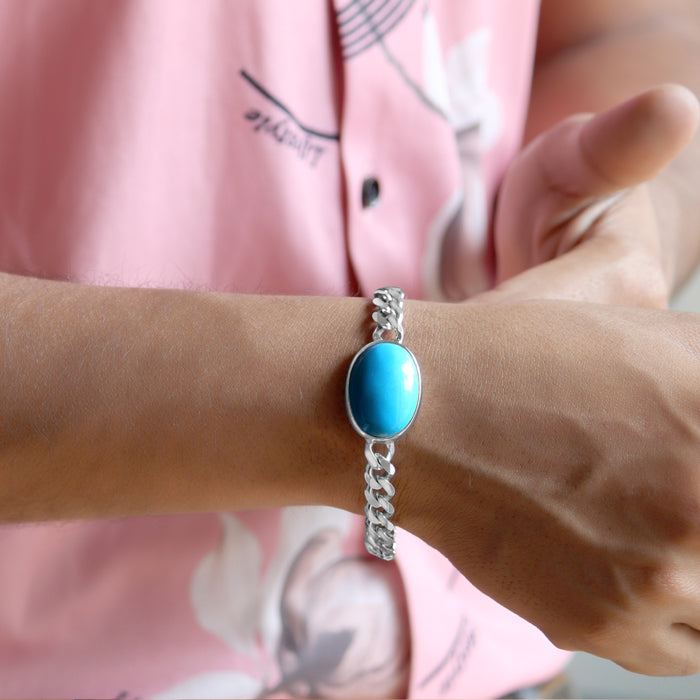 Inspired by a hero’s collection, this 92.5 sterling silver bracelet is a truly timeless piece that will remain with you for years to come. The centerpiece dial settled with a turquoise stone makes this bracelet a standout over all others.