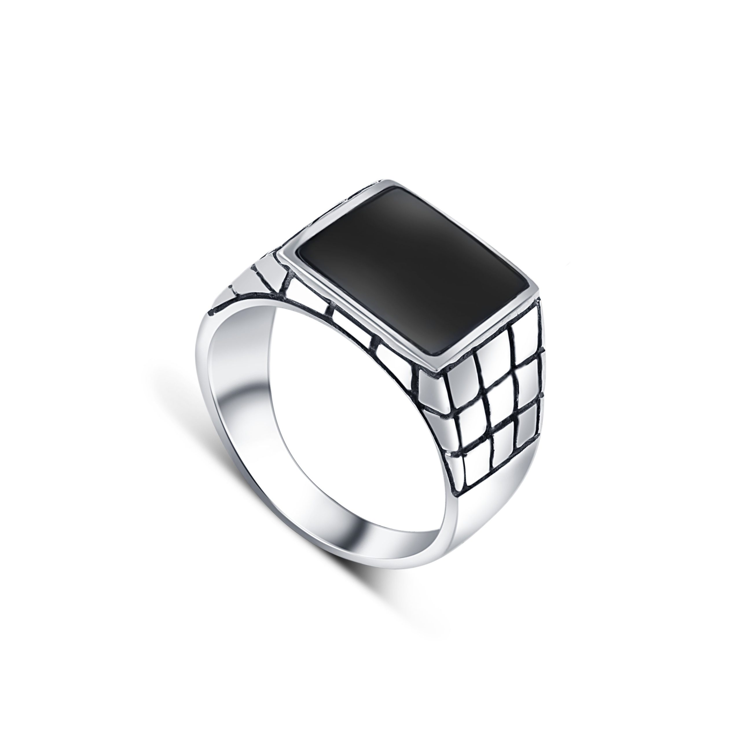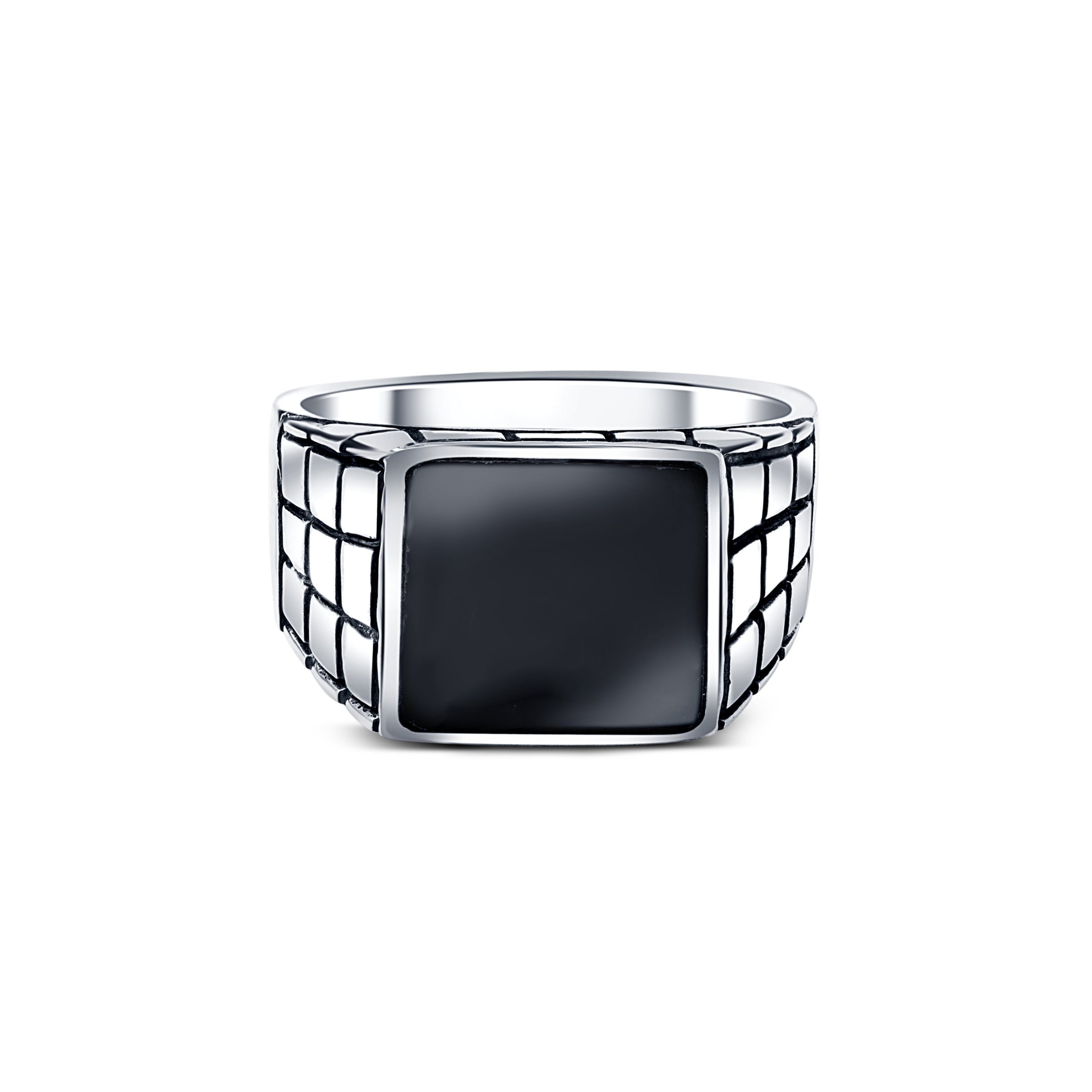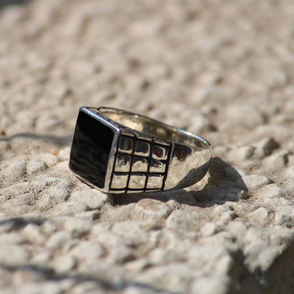 Crafted in sterling silver with an oxidised finish, this Noir Love Ring for Men features a striking black opal at its centre, set in a square setting. Checkers adorn the sides, creating a unique and elegant aesthetic, sure to elevate any look. The perfect addition to your collection. This timeless design is a must-have for any jewellery connoisseur. The durable sterling silver construction ensures this stylish piece can be with you for years to come.