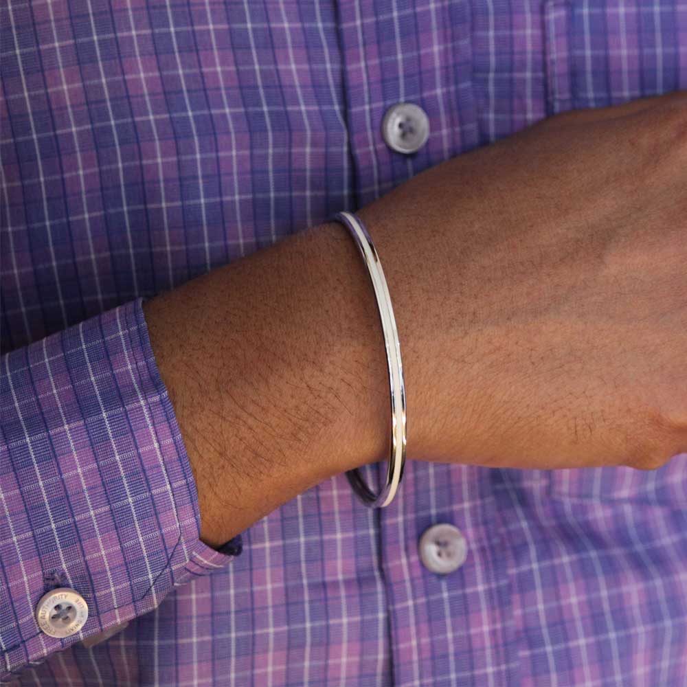 Take your style to the next level with this White Grace Silver Kada for Men! Crafted from sterling silver with a classic white enamel line, this kada is bold yet timeless. The perfect gift to motivate any man to be the best version of himself!